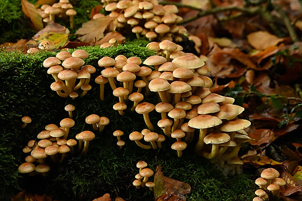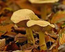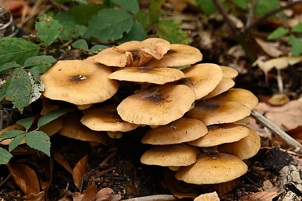 Grote Kale Inktzwam Honingzwam Geringd Donsvoetje (?) Honingzwam Lensgalwesp (?) Narcisridderzwam Nevelzwam Stinkparasolzwam Botercollybia Zwavelkop Mycena (?) Zwavelkop 17-10-2025 Clingendael en Oosterbeek